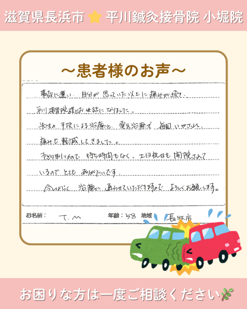 【交通事故治療】〜患者様のお声〜