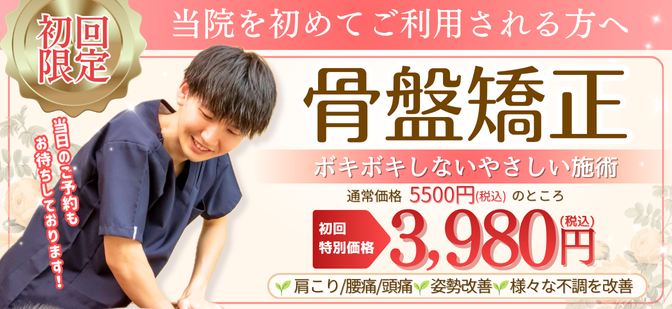 産後のママさんに合わせた優しい産後骨盤矯正をさせていただいております。またインナーマッスルを一緒に鍛えますので出産でのびた腸腰筋、骨盤底筋群を元の筋肉に戻し、矯正をした骨盤を元の正しい位置でキープ出来るお身体へ導きます。